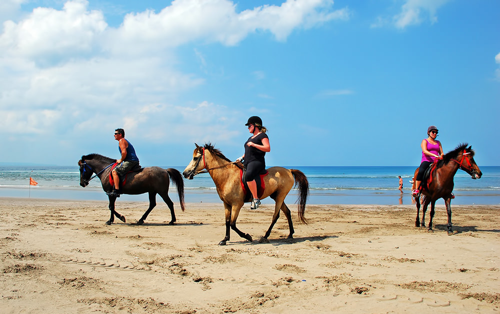 As Kuta typically rocks on with its lively beach crowd and budget stays, and Legian with its eclectic bar scene, Seminyak outshines the 2 as the island’s most prized beach resort area. Undercurrents are usually strong, and surfing is mostly for the advanced. A popular activity in Seminyak is horseback riding, starting from the Umalas stables in Canggu in the north, down to Seminyak’s Petitenget coast and Legian’s Blue Ocean Beach area.