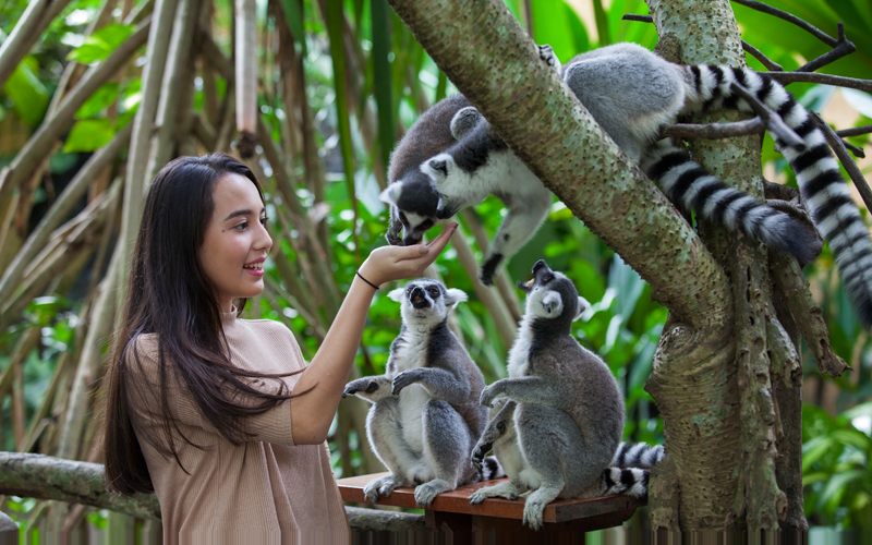 You can buy fruit for the animals at next to ticket counter to feed wallabies, deer, gibbons in gibbon islands, sun bear, orangutan, camels, etc. And also have a go, feed our wild animals such as crocodiles, tigers and lions at Bali Zoo Park.
