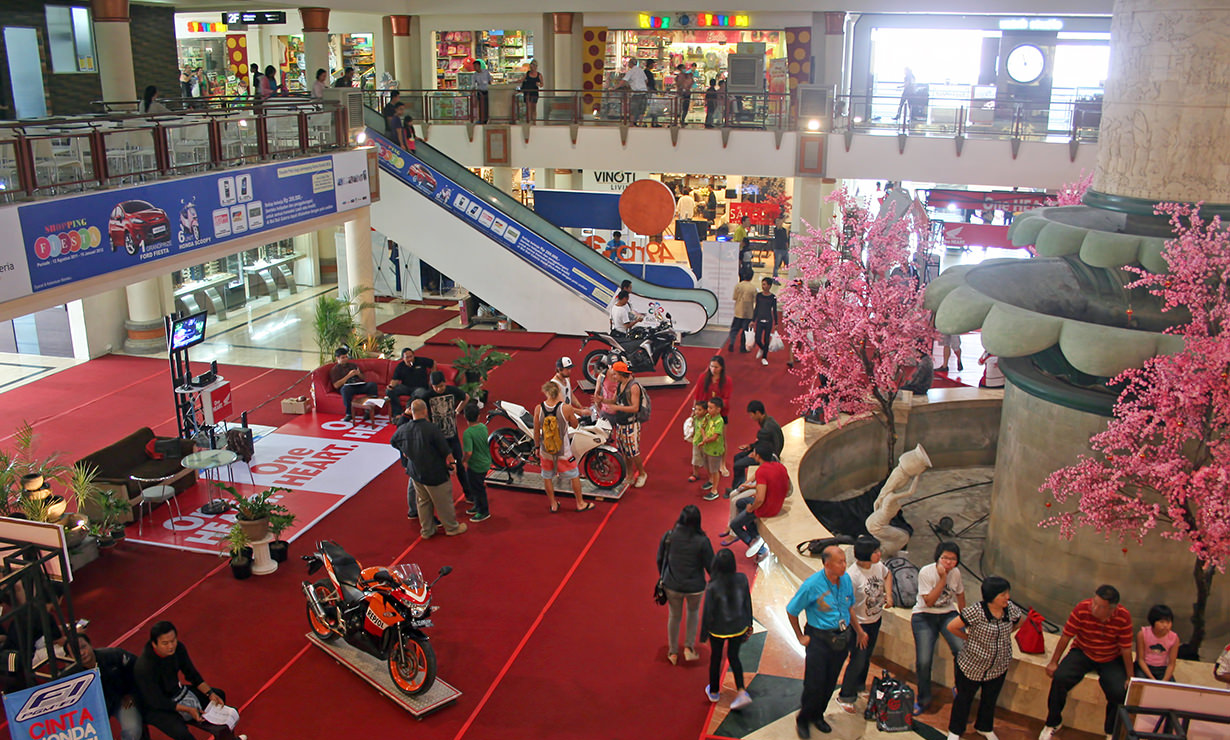 Throughout the mall and around the atrium you’ll find outlets ranging from restaurants to stores featuring branded sportswear and electronics, beauty salons and eyewear. Among them are L’Occitane, The Body Shop, NCC Restaurant, Ryoshi, Kafe Betawi, Es Teller 77, Coldstone Ice Cream, Kidz Station, J.Co Donuts, King Koil, Maxim, Vinoti Living, and many more. On the 2nd floor above the main ‘dome’ area, you’ll find a branch of the leading national Gramedia bookstore chain.
