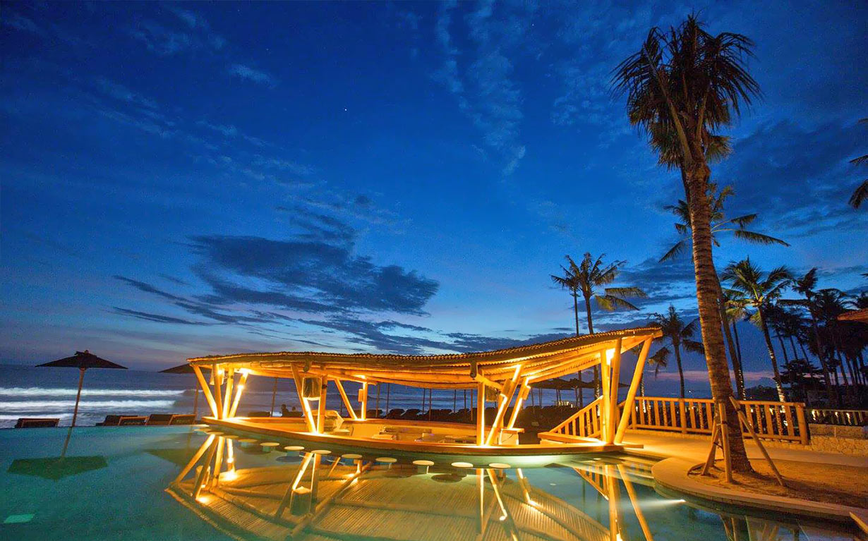 At the circular Surf Bar, you can choose a seat with the best view over the pool and the surf. Refreshing cocktails include the frozen berry margarita and the pomelo mule. The venue is a good spot to spend your whole day in Canggu as it opens until 11pm. Their roster of resident DJs hit the booth from 4pm daily, playing tunes from lounge house to pumping EDM. You can also watch night surfing from sunset, when the floodlights are switched on over the rolling waves. Head up to the Sunset Lounge on the second level of Finns Beach Club for the best views over the breaks.