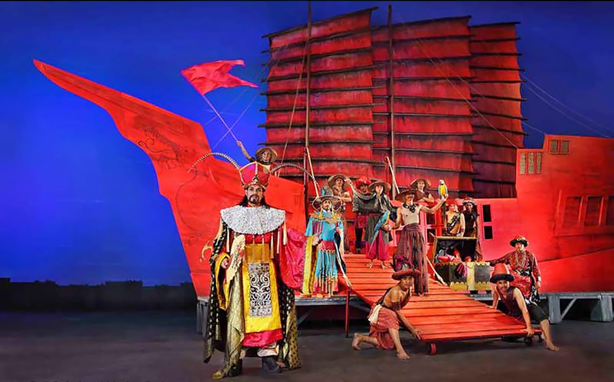 The mega-stage features specially designed props, curtains and water cannons that combine to bring spectacle and dramatic effect to the whole storytelling.