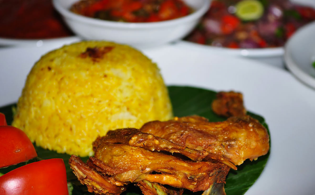 The Bebek Bengil crispy duck main course highlight comes with a choice of sautéed potatoes and a side salad or steamed white or yellow (turmeric infused) rice and Indonesian vegetables. Chicken options come in the choice of ginger chicken, chicken Kiev, and chicken teriyaki.