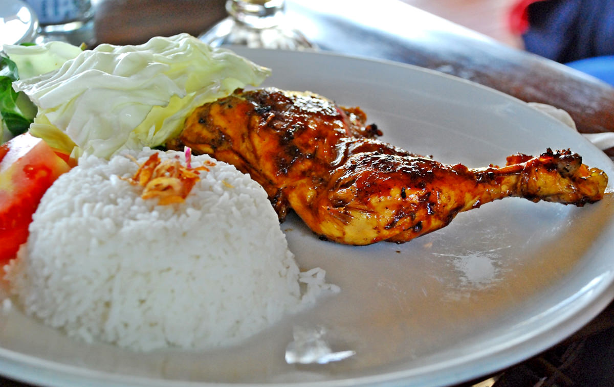Other Bebek Tepi Sawah Restaurant favorites include ayam asap goreng, a fried smoked chicken served with stir fried water spinach and sambal sauce, and spicy grilled spring chicken that it interestingly lists on the menu as ‘grilled cock fighting chicken’. Ubud has been famous for its grilled pork ribs, served at several key restaurants located all over the region, and this restaurant has its own take on the mouth-watering favorite.