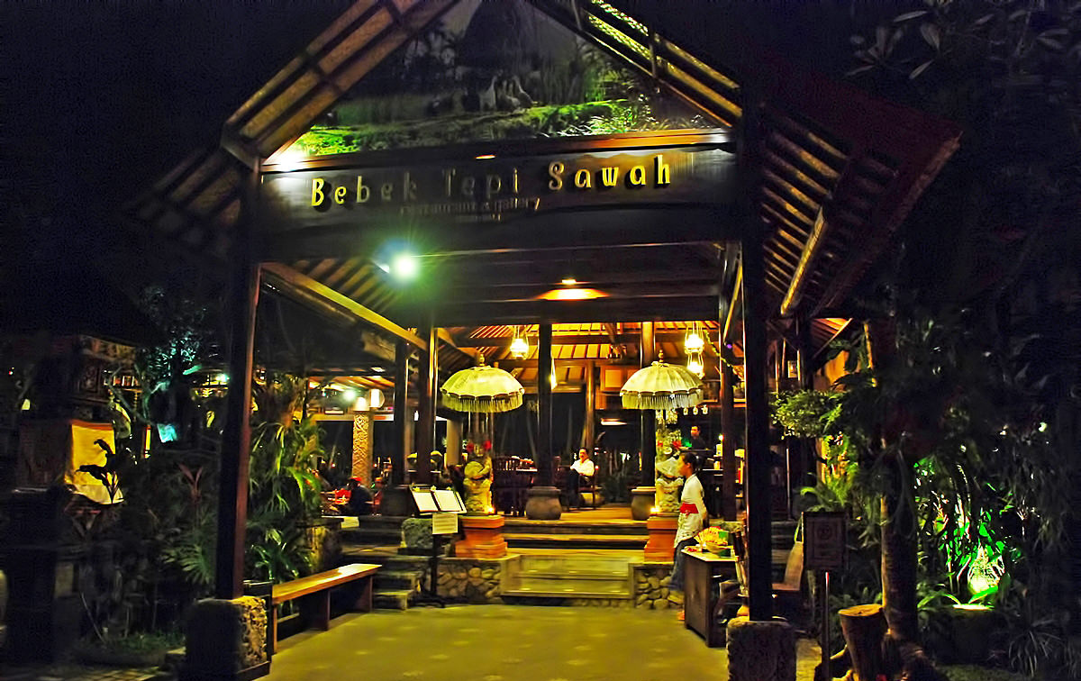 Brainchild of Balinese artist and Peliatan local Nyoman Sumerta, who decided to expand and integrate his longstanding art gallery with plush villas and this one-of-a-kind restaurant, his enterprise covers a total of 2.6ha and makes good use of its heritage landscape. Its name means ‘duck alongside paddies’, which perfectly fits its offerings. The signature menu item of Balinese style crispy fried duck is a mainstay favorite, which comes served with three different types of traditional sambal sauces: tomato-chili blend, aromatic chopped shallots with chilies and lime, and sliced chilies in soy sauce. An alternate version of grilled duck is also available.