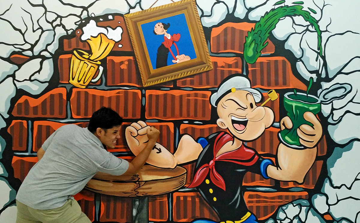 Besides 3D murals, you’ll have loads of fun inside a collection of Ames rooms, installations that give the illusion of ‘levitation’, a mirror maze and a haunted-theme room with glow-in-the-dark and backlight ghost features for some thrills. There’s even a dedicated section with an upside-down classroom, where you can take your shots to look as if you’re dancing on the ceiling. When you’ve maxed out your memory cards, seek some refreshments at the canteen beside the ticket booth. Tickets are IDR 120,000 (around USD 9) per person.