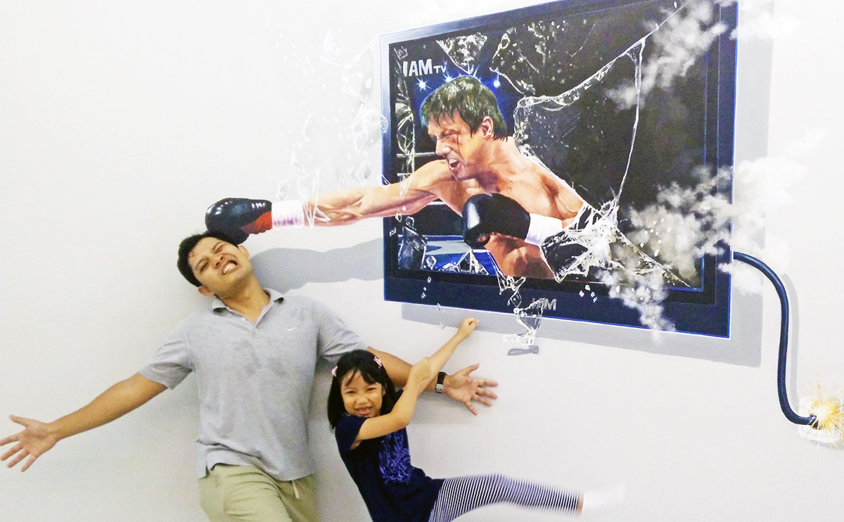 The first in the series of life-size trick-eye art murals includes African wildlife, where you can ‘sit’ beside a tiger or pose against the trunk of an elephant. Then, further along the hall, the scenes start to get crazier and funnier, such as propping your head to give the illusion you’ve stuck it in a bull’s rear end (trust us, it looks super silly given the right camera angle), or pulling Superman’s briefs as he flies. You can always trust your camera or phone to the helpful guides, who are on standby and can help you with poses when your own ideas run dry.