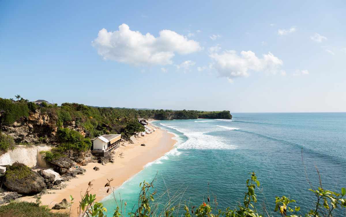Balangan Beach shares the same vicinity as Dreamland, set only a kilometre apart and separated by a small headland that serves as the famous signature Hole 15 of the New Kuta Golf Course. Players get the best bird’s eye-view over both beaches and the ocean horizon from here. The coastline is accessible down the namesake Jalan Pantai Balangan, which is about a 7-km ride west from the Garuda Wisnu Kencana cultural park or 20 km south from the main hub of Kuta. Parking fees range between Rp 2,000 and Rp 5,000 for motorcycles and cars.