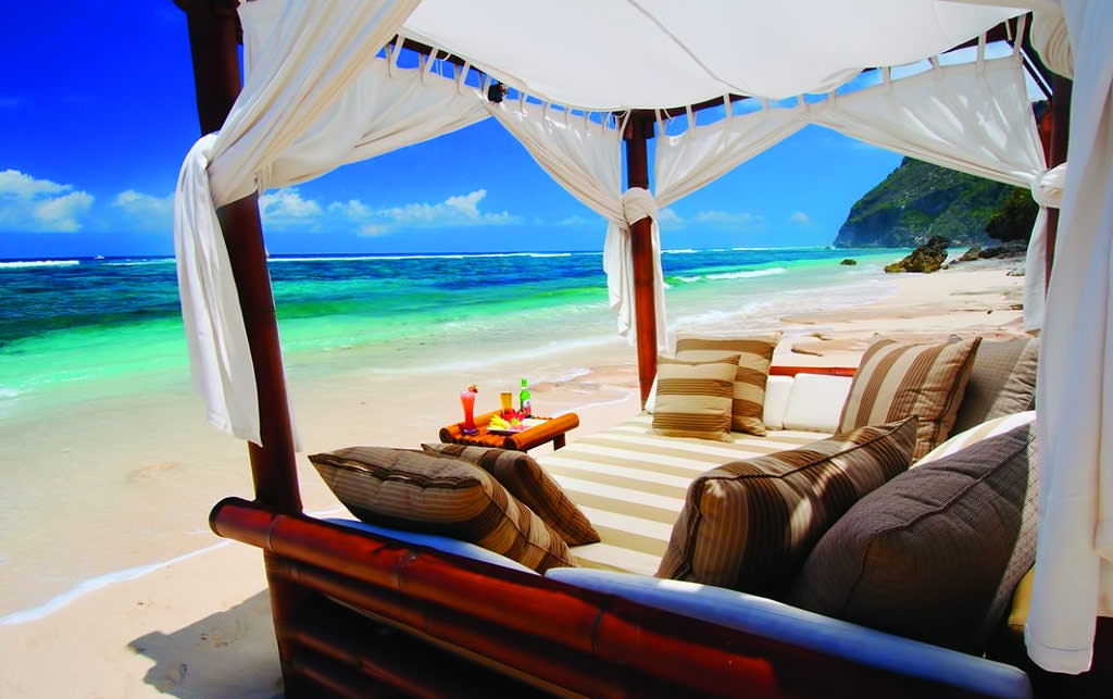 Karma Beach Bali is part of Karma Kandara’s main entertainment venue and widely regarded as one of Bali’s most exclusive beach clubs. The club features an alang-alang grass roof and a raised bamboo platform where patrons enjoy the nuances of a secluded beach and lagoon.