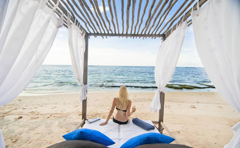 Karma Beach Bali features a laid-back tropical beach setting and 5-star services for guests who wish to sip signature cocktails and indulge in a Mediterranean-inspired menu.