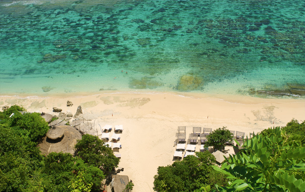 The beach club’s exclusiveness – though public guests are also welcome – is further supported by a single access via a private funicular, which transfers guests to the venue 100 metres below the limestone rock face. Karma Beach Bali is open for beach picnics, as well as beach activities and water sports.
