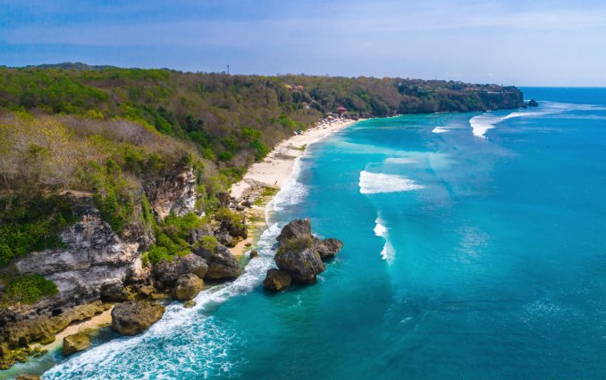 Padang Padang Beach is one of Bali’s most famous surf spots, located on the north-western coast of the island’s Bukit Peninsula. Locally known as Pantai Labuan Sait, this beach has an exotic setting – a simply stunning 100 metre-long stretch of sand that’s accessible down a flight of stairs through a unique hollow rock entrance. The surf has a steady set of barrels during good weather, attracting wave riders from around the world.