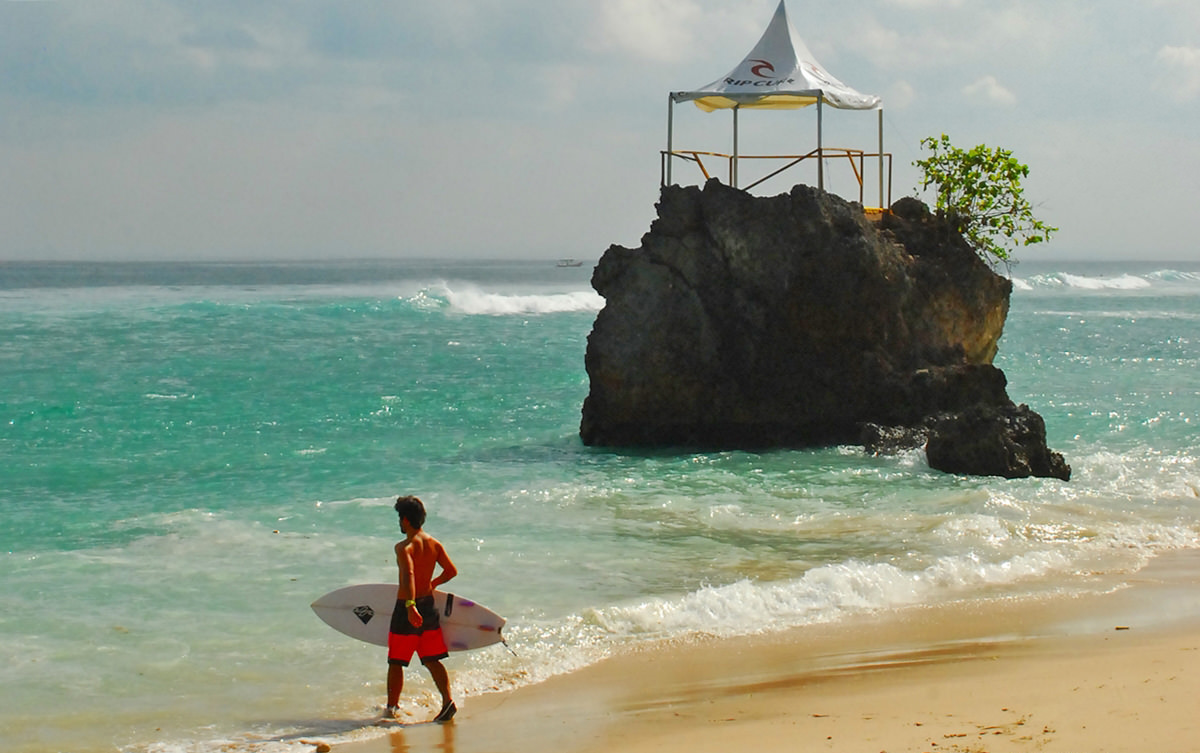 To reach the beach, head up along Jalan Raya Uluwatu. Around 30 minutes’ drive past the Garuda Wisnu Kencana Cultural Park, a junction with signs that clearly read ‘Jalan Labuan Sait’ leads you along a hilly but smooth 3.5-km asphalt route. This region has developed a lot with its rise to fame as a surfing destination. It’s now lined with shops, surf lodges and neat, western-style cafés targeted at the surfing crowd.