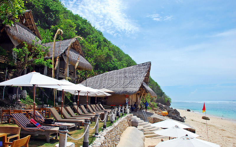 Sundays Beach Club is a favourite venue on Bali’s Bukit peninsula. The beach club is part of The Ungasan Clifftop Resort and is located in the namesake village of Ungasan. It’s where to go if you’re seeking a beach retreat with a pristine stretch of sand and swimmable waves. Here you can also enjoy Mediterranean cuisine under breezy, thatched-roof shades with ocean views.
