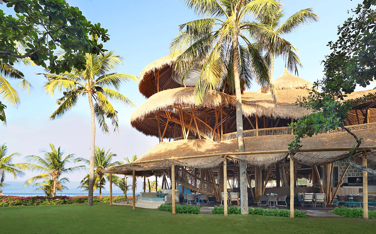 Azul Beach Club is one of the best spots in Legian to enjoy laidback drinks, sea breezes and views by day, leading into a chilled out sunset session. The beachfront restaurant and bar is next door to the Bali Mandira Beach Resort and Spa and stands out near the coastline with its visually appealing all-bamboo structure. The beach club comprises a semi-open dining section, bar and lounging space set over 3 levels, all designed under rotundas and towering thatch-roof domes.
