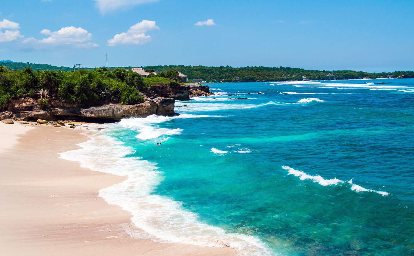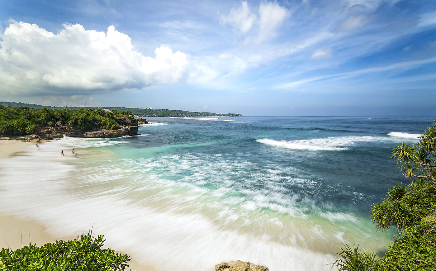 Dream Beach is a secluded 115-metre stretch of white sand on the southwestern coast of Lembongan Island, the most popular of Bali’s 3 Nusa Islands. The beach is 1 among Lembongan’s extensive collection of beautiful and quiet beaches, with a landscape that’s mostly comprised of low-lying limestone cliffs and dramatic rock formations. You can enjoy the breathtaking seascapes with bird’s-eye views from the nearby cliff edges, or head down to the small cove and dig your feet into the soft sandy shore.