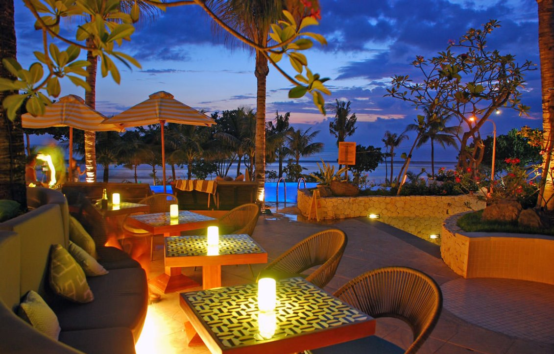 SKAI Beach Club at Padma Resort Legian in Bali is the resort’s main beachfront venue, where you can enjoy stunning sunsets over the Legian surf from various cosy lounging spots indoors and out on a semi-alfresco terrace. Its name is a playful acronym of ‘Sunset, Kocktail, Alfresco and Indulgence’. SKAI adds to the small number of beach lounging options on Legian Beach.