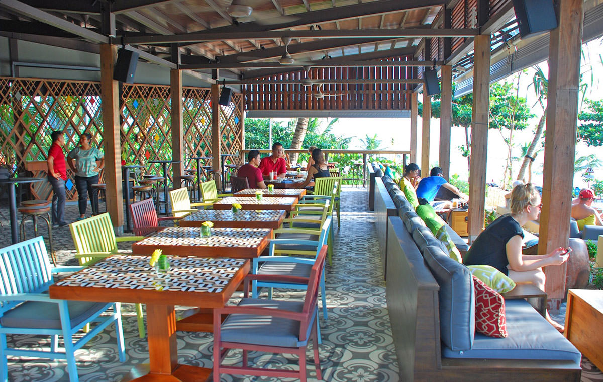 For a truly beachside experience, the poolside lined with parasol-shaded sun loungers is a popular spot. Ask for a pint of “minus 2″’ extra cold beer, or go for one of their signature sangria selections available by the carafe.