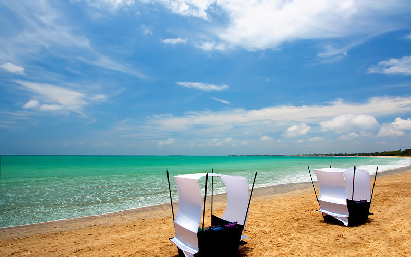 Lazy beds, pergolas, and cushioned seats arranged neatly on the white sand over a raised and reinforced concrete platform enhance the overall experience. As evening creeps in, the seascape at night is a dreamy scene, with hanging orb lamps, and the twinkling lights of fishermen’s boats on the water, as well as the Ngurah Rai Airport’s runway in the distance.