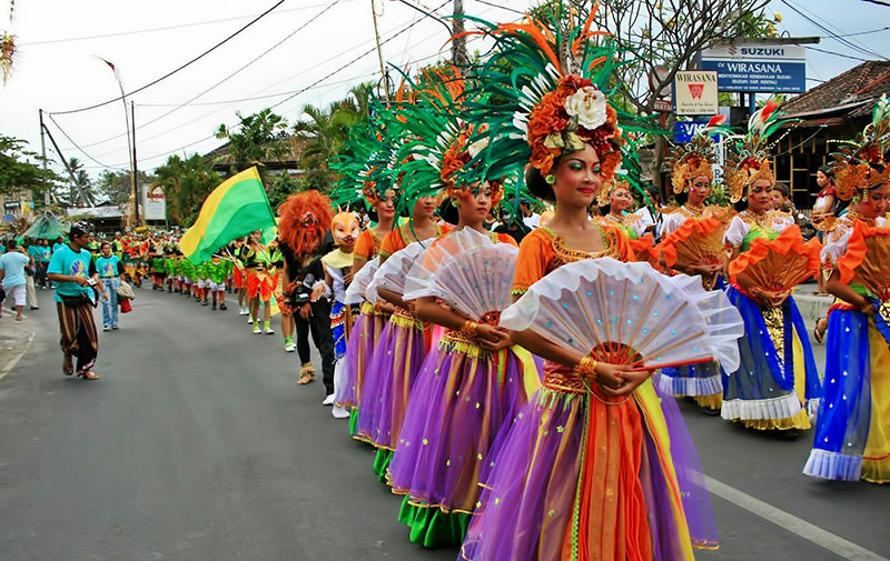 The festival’s regular agenda includes a bazaar and food festival, fashion shows, expos, tours, culinary challenges involving hotel chefs, mass yoga on the beach, a fun run and a variety of sporting activities, environmental awareness programs, an international kite festival and an exotic jukung festival.