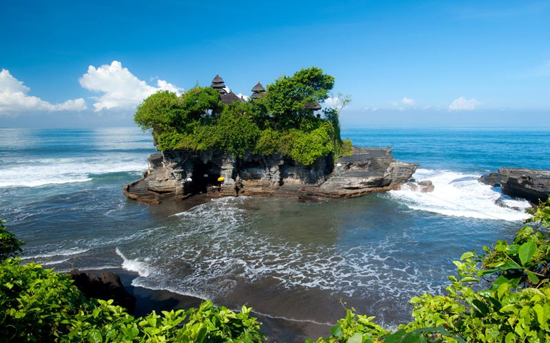- From there, make your way to the Kedaton Monkey Forest and Sanctuary, where hundreds of gray macaques swing from the treetops and approach visitors. Walk among these curious critters and as the afternoon winds to a close, ride to Tanah Lot, a pilgrimage site and temple set dramatically on a rock in the sea. Watch the surf crash around the base of the temple as the sun sets on this picture-perfect scene.